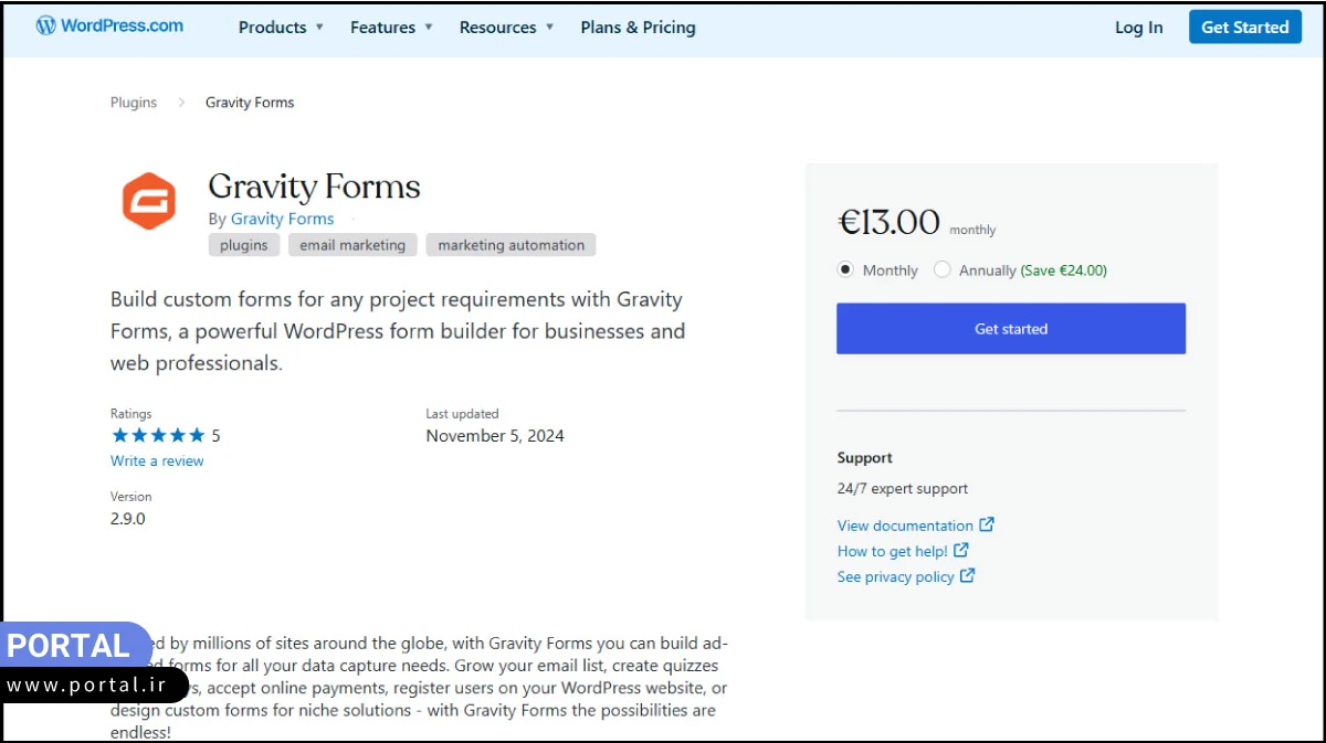 1. در قدم اول باید افزونه گرویتی فرم را در وردپرس نصب کنید. (برای استفاده از نسخه فارسی، میتوانید افزونه فارسیساز مرتبط را نیز نصب کنید.)