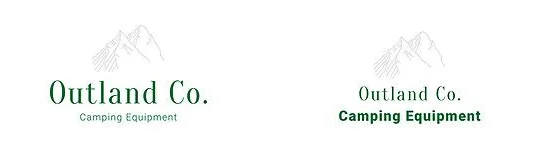 تگ لاین انتخاب شده باید در زمان قرار گرفتن کنار نماد و نام برند، از هر دوی آنها کوچکتر باشد و تمامی توجه را به خودش جلب نکند. در تصویر پایین مشاهده کنید که یک تگ لاین با فونت بزرگ چقدر باعث بر هم ریختن تعادل در تصویر و لوگو شده است. (لوگوی سمت راست)