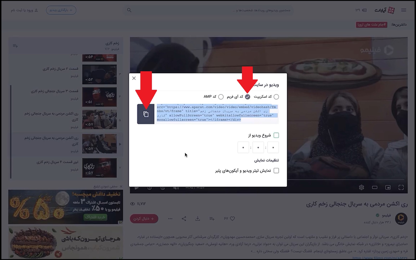 نحوه قرار دادن ویدیو از آپارات در سایت