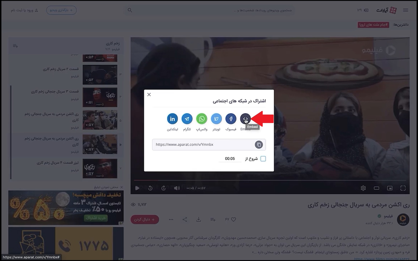 در ادامه یک پنجره برای شما باز میشود که از داخلی آن گزینه Embed را انتخاب کنید.