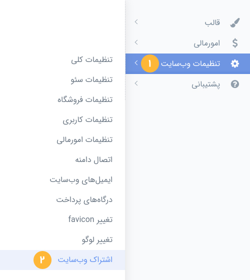 ۲- گزینه «اشتراک وبسایت» را انتخاب کنید.