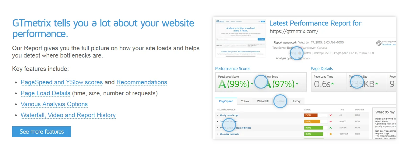 این ابزار جزو متداولترین ابزارها توسط وبمستران می باشد که از آن برای تست سرعت سایت خود استفاده می کنند. این ابزار Pagespeed و Yslow را محاسبه می کند. Pagespeed در واقع به بررسی سرعت سایت شما امتیازی را می دهد که مطابق با گوگل بوده و کاملا دقیق می باشد، Yslow نیز یکی دیگر از فاکتورهای تست سرعت سایت می باشد که مربوط به شرکت یاهو می باشد. این دو عامل به سرعت سایت شما امتیازی را در مجموع خواهند داد که این امتیاز ها از A تا F می باشد و می توانید سرعت سایت خود را دیده و برای رفع مشکل راه حلی را انتخاب کنید.