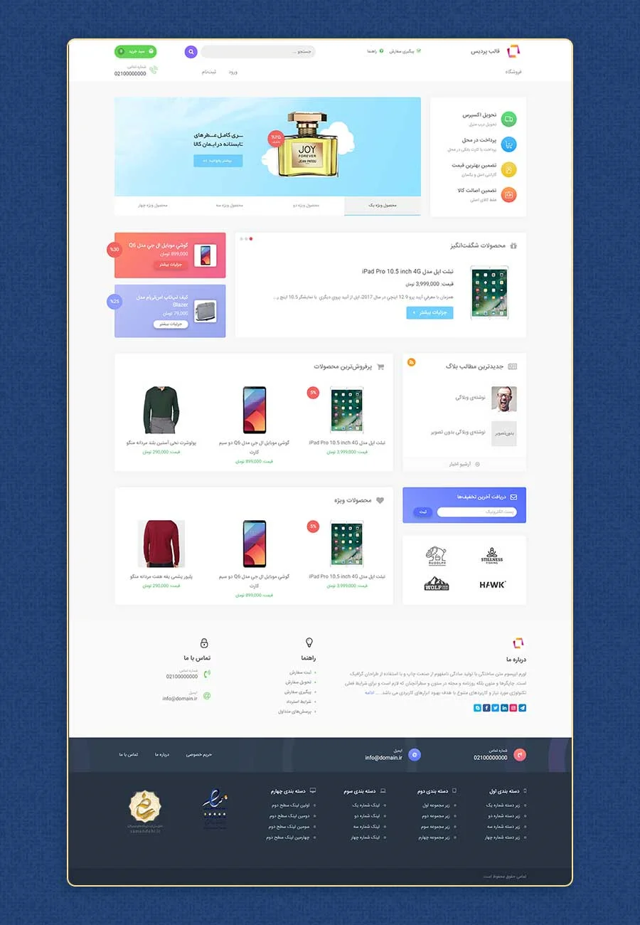 در ادامه پیشنهاد میکنم قالب های فروشگاهی، فروشگاه ساز پرتال را نیز مشاهده نمایید.
