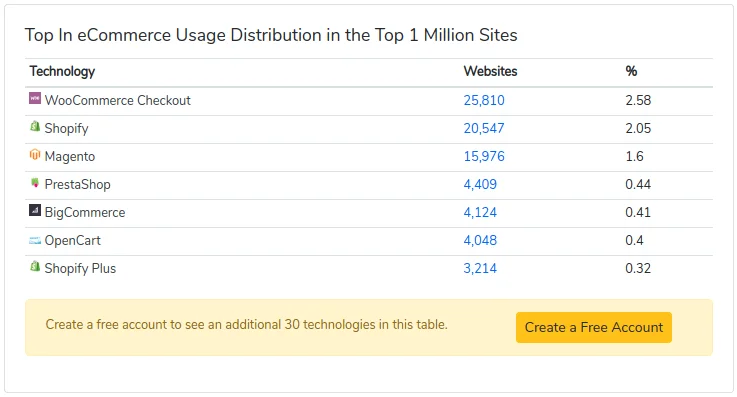 با نصب افزونه فروشگاه ساز ووکامرس روی وردپرس،هر نوع محصولی از نوع فیزیکی (کفش، لباس، لوازم آرایشی، لوازم برقی!) گرفته تا دیجیتالی (فایلهای دانلودی) را میتوانید بفروشید. از روی تصویر زیر متوجه میزان محبوبیت و استفاده بالا از این افزونه میشوید.